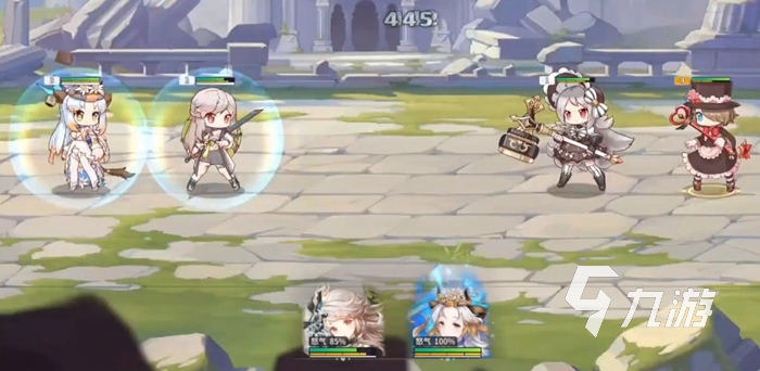 這一關(guān)我們出戰(zhàn)的角色是竹刀筱以及奶牛弗勞爾,進(jìn)入第二幕關(guān)卡之后敵人會(huì)率先發(fā)起一輪進(jìn)攻,然后我們筱的大招是一定先好的,但是這個(gè)時(shí)候不要急著放。筱的大招是可以對(duì)敵方十字范圍內(nèi)的敵人造成攻擊力x122%的傷害,并且造成傷害的一部分是可以轉(zhuǎn)換成為自身的生命值的。