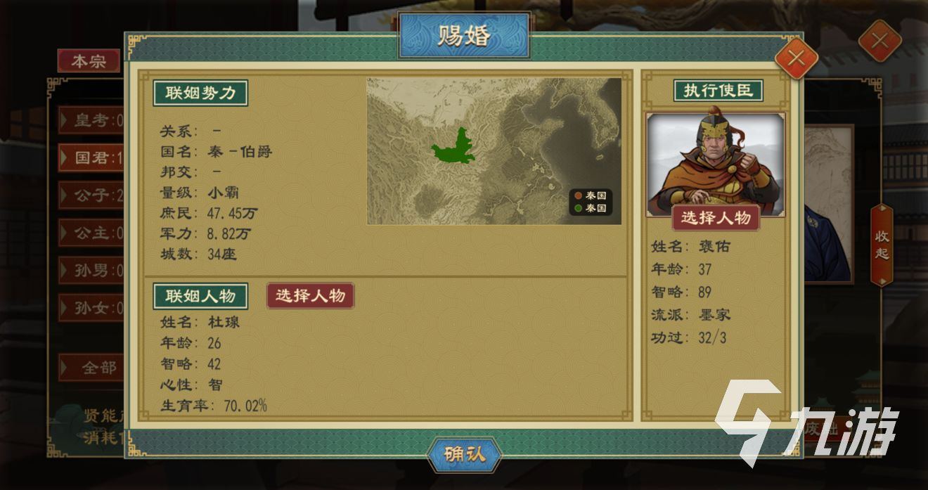 常見(jiàn)的一種便是對(duì)其進(jìn)行賜婚了,玩家們可以在每個(gè)人物的詳情頁(yè)看到賜婚的選項(xiàng),通過(guò)這個(gè)功能就可以在全國(guó)的范圍中幫其找到合適的對(duì)象,如果需要和別的國(guó)家聯(lián)姻的話,就可以在指定的國(guó)家或城市界面找到聯(lián)姻的選項(xiàng),然后派遣使者前去談?wù)?,之后完成一系列的工作就能完成婚配了?/p>
