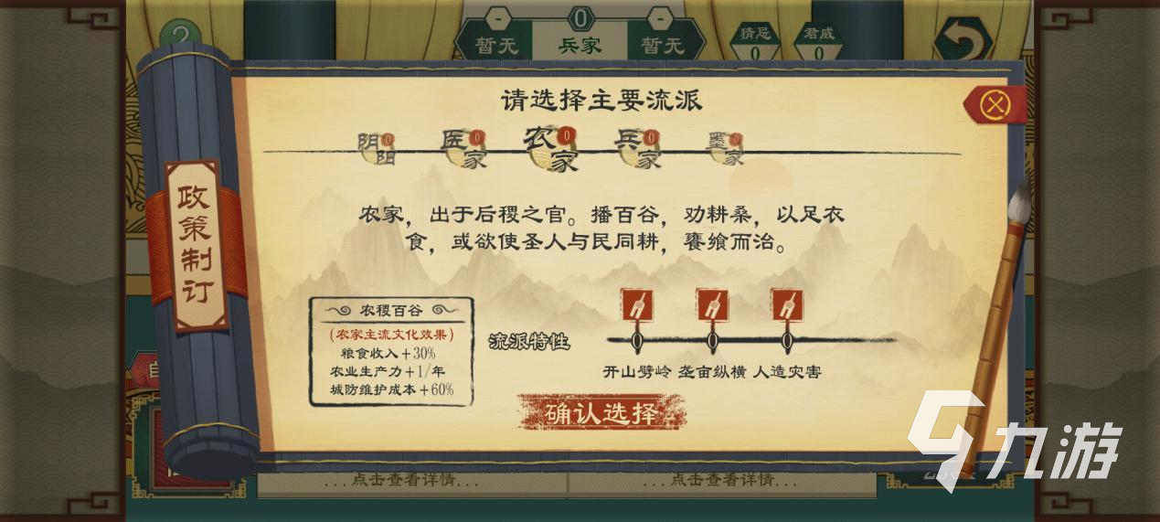 1、首先需要確認(rèn)的一點(diǎn)是,游戲中有著非常多的流派。而流派的政策效果對(duì)整個(gè)對(duì)局影響都是不同的。