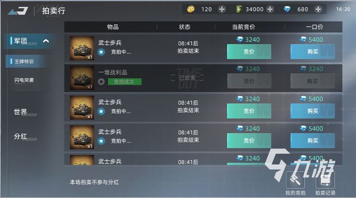 進入軍團后還可以解鎖拍賣行的玩法,該玩法可以消耗鉆石購買各種軍團玩法當中獲得的道具,這些道具大家也可以不購買,只要有其他的玩家們購買就會獲得大量的鉆石分紅獎勵。