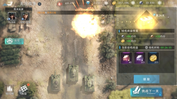 也就是本作里面的無(wú)盡戰(zhàn)爭(zhēng)玩法了,小伙伴們可以將其看作是一個(gè)裝備材料副本,如果打算強(qiáng)化升級(jí)裝備的話,就要去多刷一刷這個(gè)副本了,同時(shí)這個(gè)副本也是隨著關(guān)卡的不斷推進(jìn),其獎(jiǎng)勵(lì)也是更為豐厚的,而且小伙伴們也可以讓自己麾下的部隊(duì)來(lái)此掛機(jī),通過(guò)掛機(jī)也是能收獲不少的材料獎(jiǎng)勵(lì)。