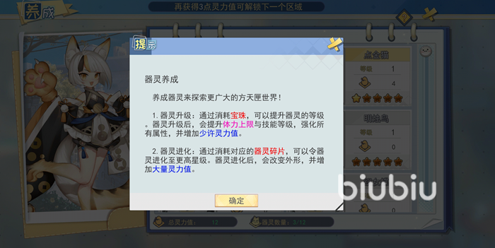 玩家可以通過消耗寶珠去升級器靈,還可以通過消耗碎片去進化器靈,這都可以增加器靈的靈力值。