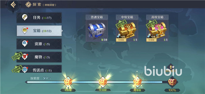 1、在神秘洞窟入口處找找會看到兩個寶箱,都是藍(lán)色寶箱,很明顯的。