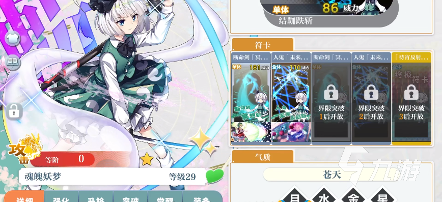 首先是角色魂魄妖夢的大招技能“侍宵反射”,這是目前版本中最強力的單體擴散型大招。該技能的傷害倍率雖然沒有黑妖夢的大招那么高,但是侍宵反射的最大優(yōu)點就在于它是陰攻傷害,而目前版本中大部分敵人,包括第一章主線BOSS八云紫在內(nèi)普遍都是陽防高,陰防低。此時魂魄妖夢的角色大招就可以打出非??捎^的傷害,比較可惜的是,作為角色大招,侍宵反射在使用后會禁用全部其它技能,因此大家在使用該技能時要判斷好釋放的時機。