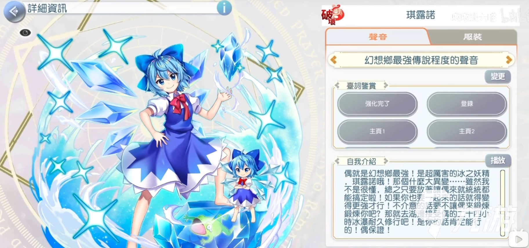 在這里小編提醒大家,琪露諾強(qiáng)度不高,不適合高戰(zhàn)力玩家,對于低戰(zhàn)力玩家,琪露諾還是會有很高的登場率和勝率,還是挺香餑餑的哦!