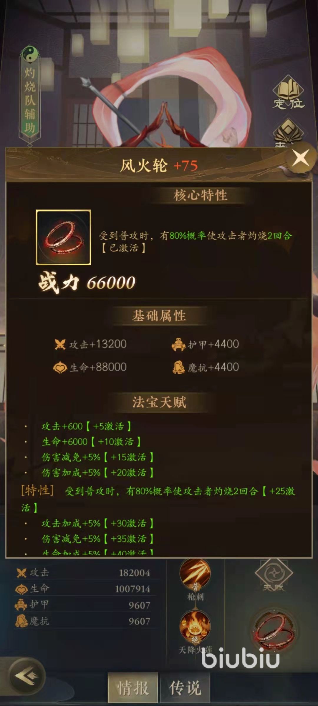哪吒的法寶是風火輪,法寶的的特性就是在哪吒受到普通攻擊的時候,有很高的概率能夠將攻擊者灼燒,這樣哪吒就又多了一個灼燒的來源。大家可以把哪吒當做是一個穩(wěn)定的灼燒來源,然后圍繞著哪吒來搭配出一整套的灼燒隊來,這就是哪吒的強度。