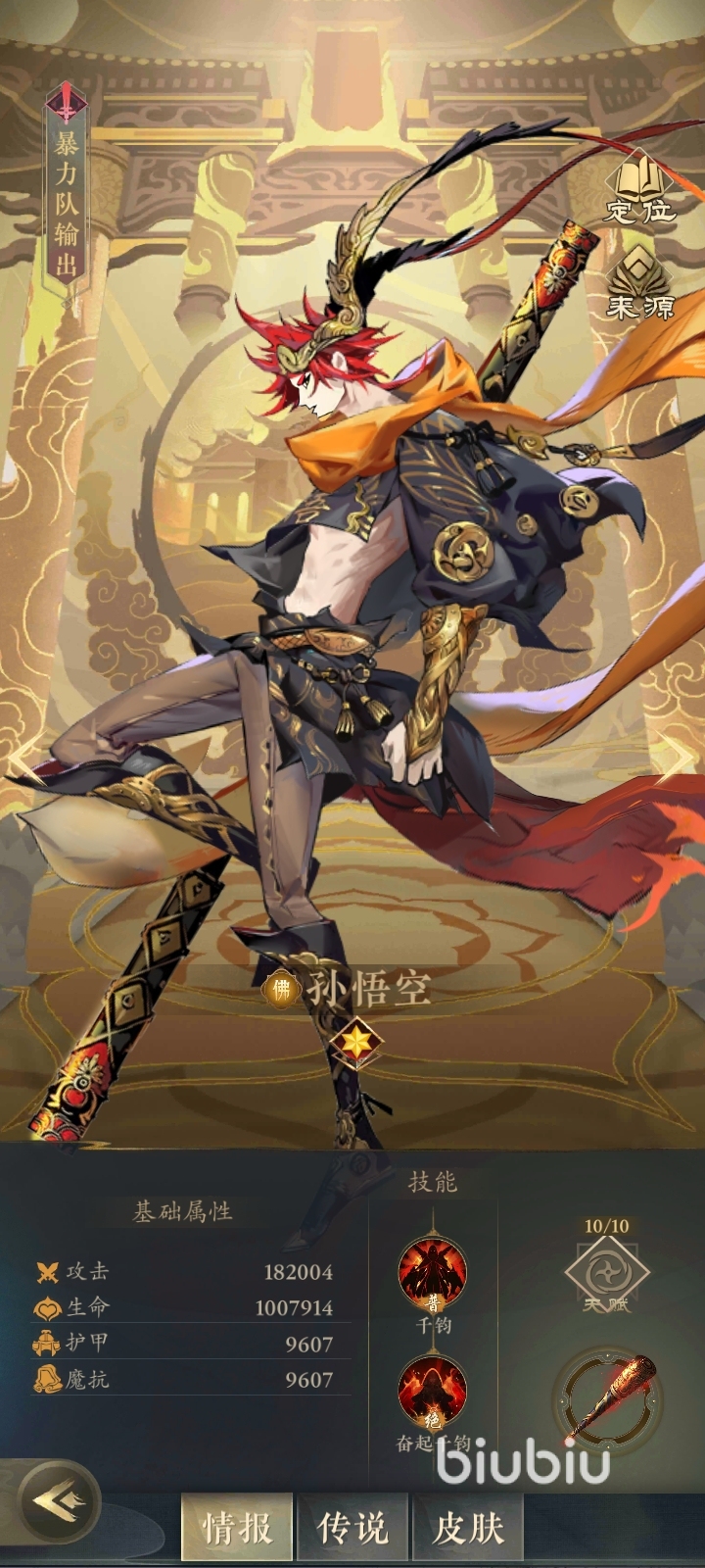 在這款游戲當(dāng)中,小編最喜歡的角色,莫過于孫悟空了,孫悟空屬于佛族,他的技能傷害非常強(qiáng)大,而且每次釋放技能都能夠提升10%的傷害,他的天賦達(dá)到6星之后,輸出傷害會(huì)增加1010%星以后會(huì)增加80%,可以說戰(zhàn)斗能力隨著天賦的上星非常迅猛的增長,而且每次攻擊都會(huì)恢復(fù)一點(diǎn)怒氣值,這個(gè)怒氣值又能保證孫悟空迅速發(fā)出后面的大招形成良性循環(huán)。