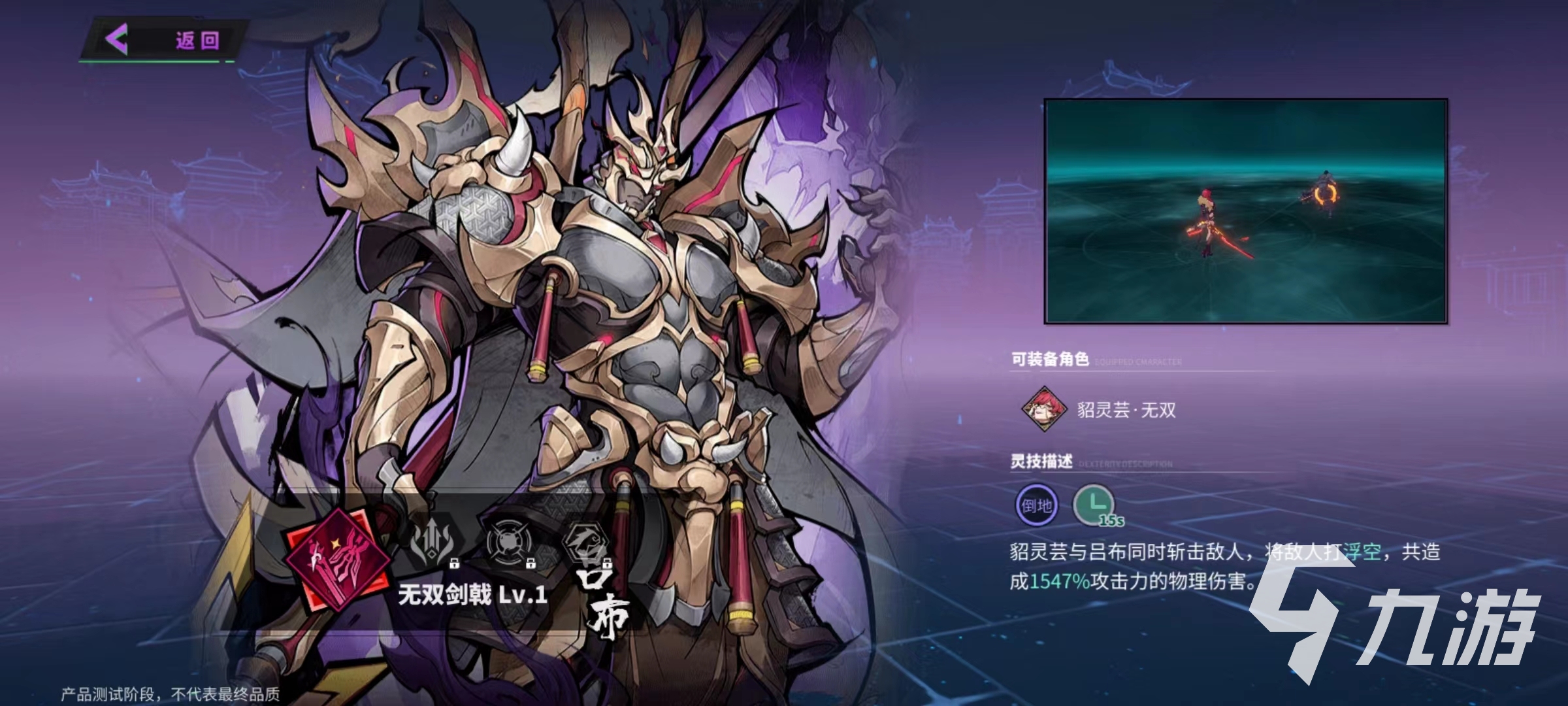 最后再講一下貂靈蕓的靈技搭配,小編選擇的是方天畫斬,無雙劍戟和隕神斬的組合,無雙劍戟可以召喚出呂布共同打出強(qiáng)力輸出,方天畫斬使得呂布可以對(duì)前方敵人造成倒地效果,隕神斬下呂布和貂靈蕓流發(fā)動(dòng)連續(xù)三次攻擊。這些技能組合完全是純傷害。