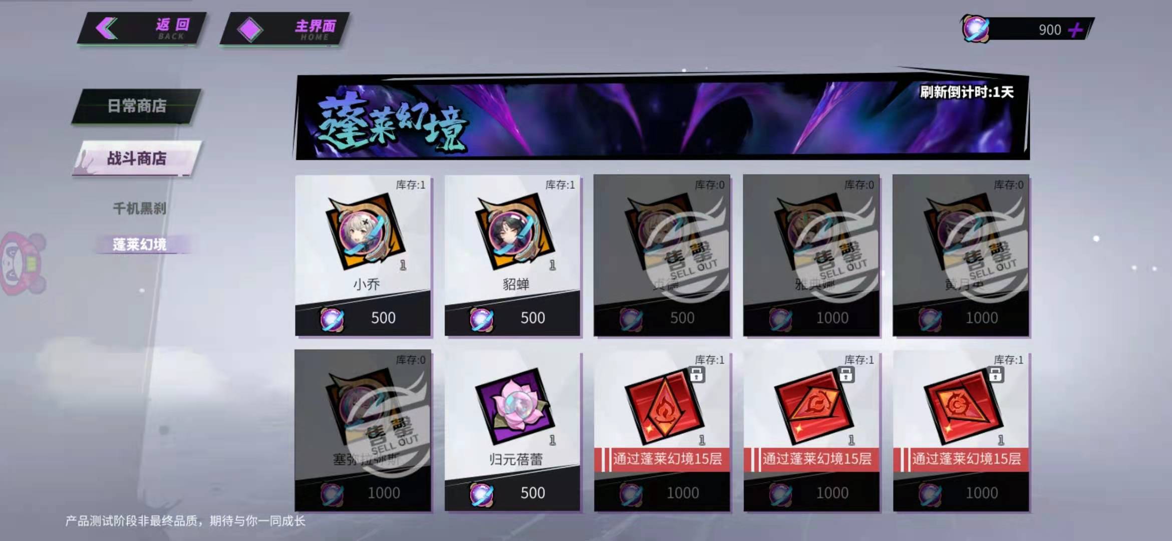 蓬萊幻境:同樣也是對(duì)應(yīng)玩法挑戰(zhàn)獲得時(shí)空魂珠,可以兌換武魂姬、歸元蓓蕾和紅色靈紋,需要根據(jù)玩家通關(guān)蓬萊幻境的層數(shù)逐漸解鎖貨物。貨物都只有一件庫(kù)存,只能在刷新后繼續(xù)購(gòu)買。