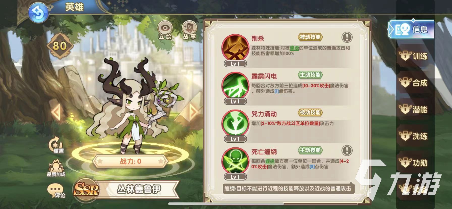 叢林德魯伊一共有四個技能,前三個是自身的自帶技能,最后一個是森林陣營特有的賦予技能。