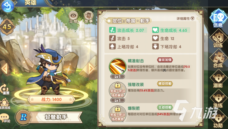 在游戲中英雄的定位還是分為很多個品級的,而輕弩射手屬于R級別的一個英雄,英雄的品級不是很高,但影響作戰(zhàn)的除了品級之外,還有具體的能力設定。在定位上屬于一個射手的設定,也就是隊伍的一個輸出,在陣營上是帝國的一個設定。
