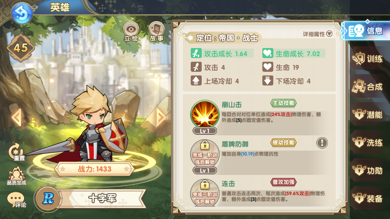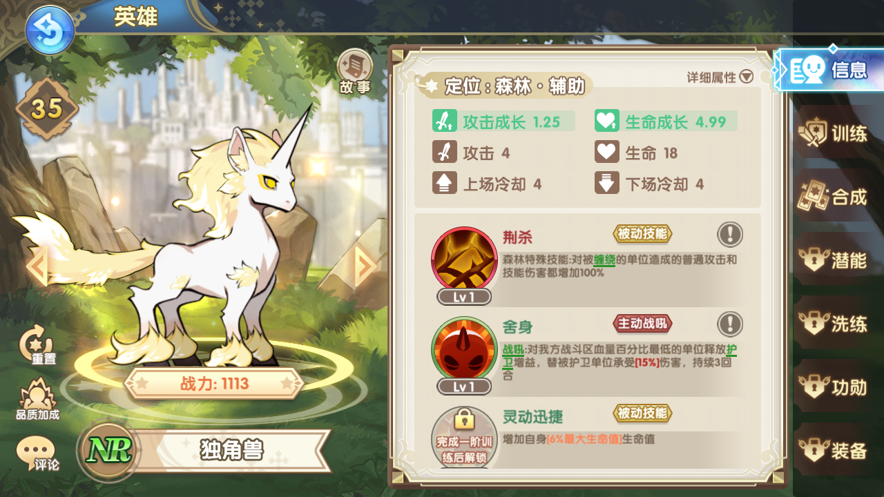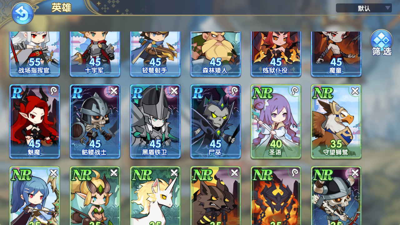 最后就是SR的英雄了,這個級別的英雄雖然說不是游戲中的主力設(shè)定,但是在基本能力上還是很不錯的,尤其是一些森林陣營的英雄,在輸出能力以及守衛(wèi)能力上都是比較優(yōu)秀的。這個品級的在沒有上位SSR的時候是必須要養(yǎng)成的,是前中期階段最主要的推圖戰(zhàn)斗力,養(yǎng)成也不要怕花費資源,都是可以回收利用的。