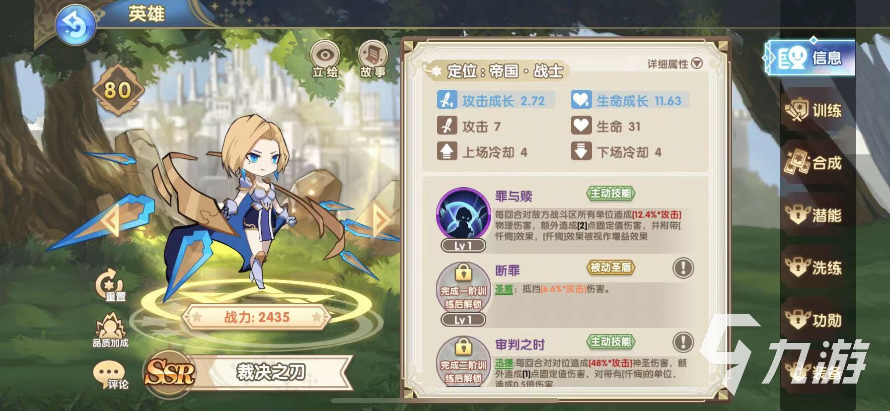 來源: 極光 作者: 檸檬柚子茶 2021年09月30日 10:32裁決之刃是魔卡之耀手游內(nèi)的一個帝國角色,他在游戲里的品階為ssr,是目前游戲內(nèi)品階最高的戰(zhàn)士,最近就有玩家問到了魔卡之耀裁決之刃值得培養(yǎng)嗎?今天就讓小編來給大家詳細分析一下游戲內(nèi)裁決之刃的實力。