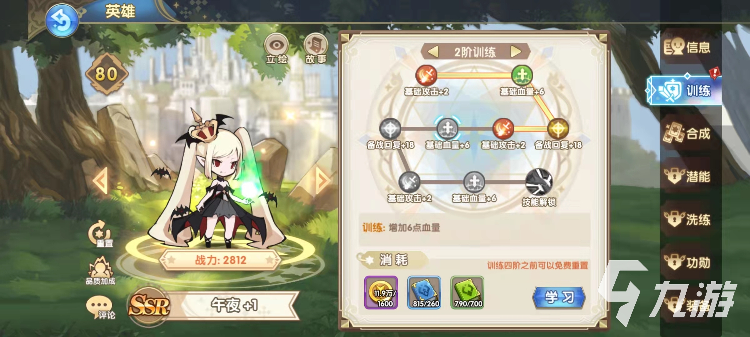 午夜是屬于法師英雄,上場的冷卻時間是兩個回合,下場的冷卻時間是四個回合,在技能方面,只有一個主動技能暗黑詛咒,效果是可以傷害敵方第一位的目標,造成傷害之后恢復自身的生命值,并且額外造成一次固定傷害,同時附加傷痕效果。被動技能傷口打擊的效果是,在攻擊被撕裂的目標的時候,傷害可以提升,還有一個普攻強化效果,那就是當午夜的血量過多的時候,普攻就可以附加傷痕效果,兩次傷痕效果就可以觸發(fā)撕裂了。