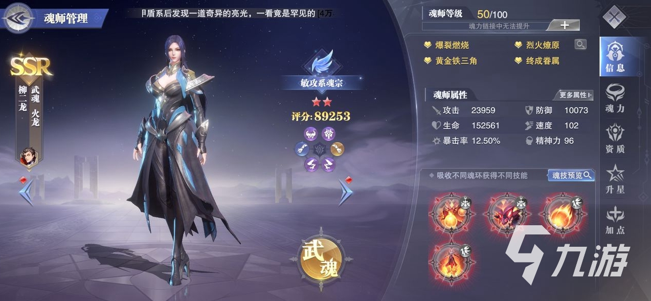 柳二龍作為敏攻的魂師,來自火系,擁有不錯的暴擊和爆傷,搭配飛行系魂環(huán)之后,帶來更多的增益。二龍的屬性翻倍之后,大招輕松擊殺對手。
