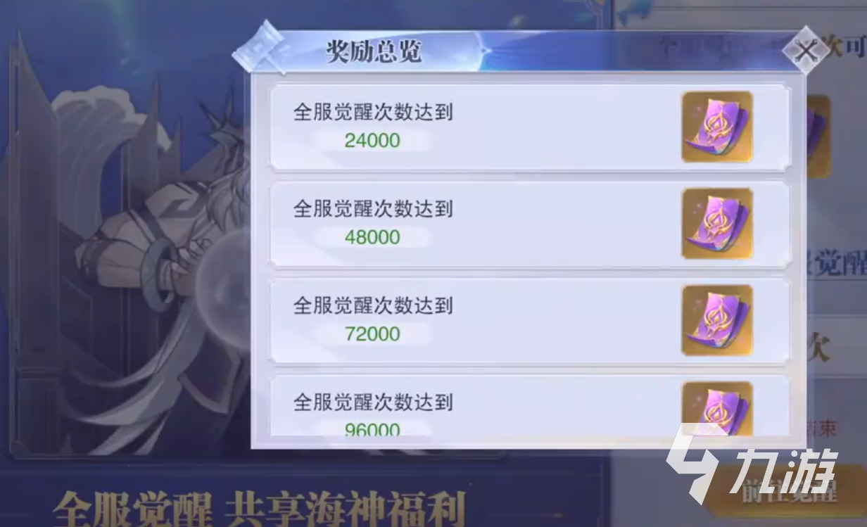 另外百日活動(dòng)里面還包括海神祝福,全服累積覺醒次數(shù)達(dá)到一定次數(shù),即可獲得五張覺醒券。 另外在期間獲得的海神之禮道具,可以在商店里面兌換武魂覺醒券,100個(gè)即可兌換一個(gè)。接著還有一個(gè)瓜分紅包的活動(dòng),在活動(dòng)期間的中午12點(diǎn)、晚上六點(diǎn)、晚上九點(diǎn),每個(gè)時(shí)間段登錄都可以獲得鉆石瓜分的紅包,小伙伴們要記得準(zhǔn)時(shí)上線。
