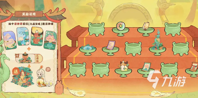 然后是“夢謁巫山”主圖的限時建筑上線,這能為蘿蘿山帶來獨特的賜福效果,此外“雩禮之祭”也會同步開啟,大家消耗蘿卜幣進行祈福后能獲得豐厚大獎,獎池中包含喚靈符、九巍望曦等精美大獎,以及兩款全新的乙等建筑。