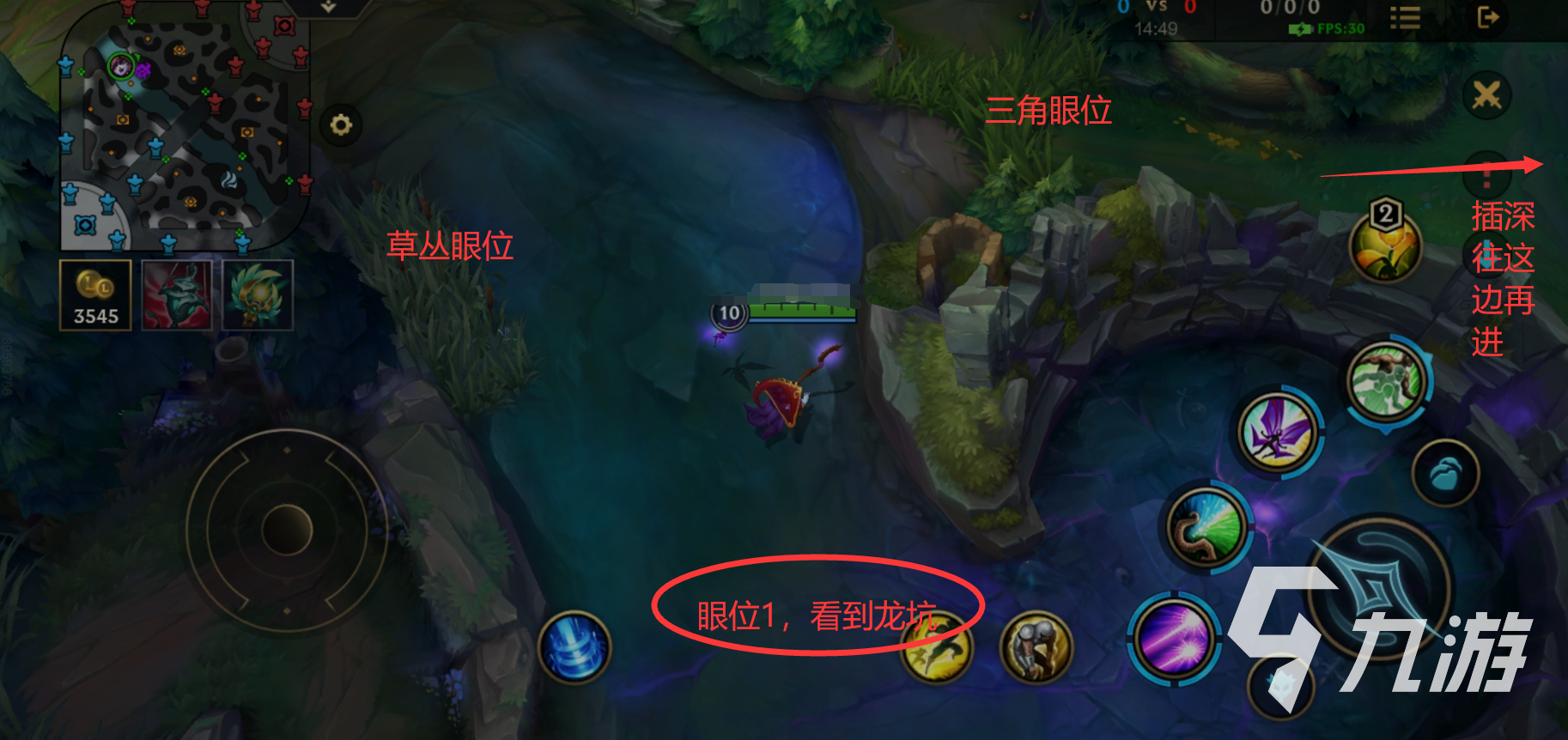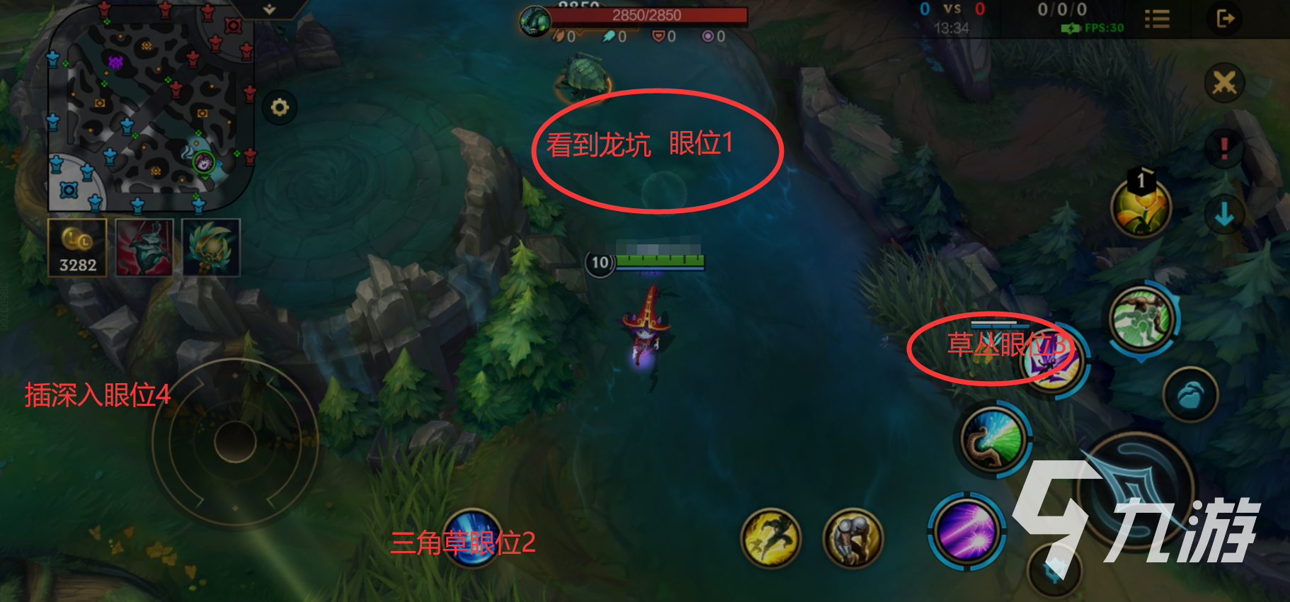對(duì)線插眼就按照下圖基本上可以預(yù)防敵方打野來(lái)抓,膽子大插深點(diǎn)可以插到敵方紅或者藍(lán)buff處。