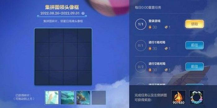 在這個(gè)活動(dòng)的主頁(yè)面中,玩家要把16塊拼圖放到對(duì)應(yīng)的16個(gè)格子里,擺放是有有順序的,不能放錯(cuò)了,玩家需要收集到16個(gè)塊才能完成這個(gè)任務(wù)。那么拼圖該怎么去獲得呢?其實(shí)只需要每天上線玩一次,一天就能領(lǐng)取一塊。每天還可以玩上幾局,也可以幾個(gè),每天最多累計(jì)獲得4個(gè),也就是4天就能完成任務(wù)啦。