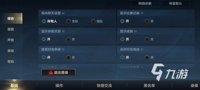 大家進(jìn)入到游戲之后點(diǎn)擊設(shè)置,然后選擇左下方的第一個(gè)標(biāo)簽頁(yè)基礎(chǔ),隨后在綜合一欄中可以找到【顯示比賽記錄】的開(kāi)關(guān)按鈕,這里我們選擇關(guān),然后返回就可以保存設(shè)置了,在進(jìn)行上述的設(shè)置操作之后我們也就成功隱藏了戰(zhàn)績(jī)了。而除了設(shè)置戰(zhàn)績(jī)隱藏之外,我們還可以在綜合這一欄中隊(duì)局內(nèi)聊天設(shè)置、親密關(guān)系的顯示與隱藏、好友申請(qǐng)的開(kāi)關(guān)、好友觀戰(zhàn)等功能進(jìn)行調(diào)整。