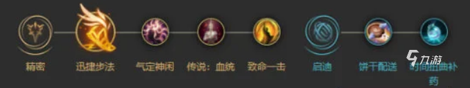 主系的選擇為精密,副系為啟迪,其余的小符文點(diǎn)攻速,自適應(yīng)以及護(hù)甲。