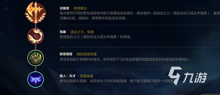 符文優(yōu)先考慮征服者、殘暴、骸骨鍍層、獵人:天才這四個天賦,如果說對線手長的英雄可以把獵人換成果子,征服者的話肯定是最適合鱷魚的符文,因?yàn)轺{魚在開大之后所造成的范圍傷害也可以疊征服者效果。這套符文算是比較標(biāo)準(zhǔn)的戰(zhàn)士符文,無需做其他的調(diào)整。