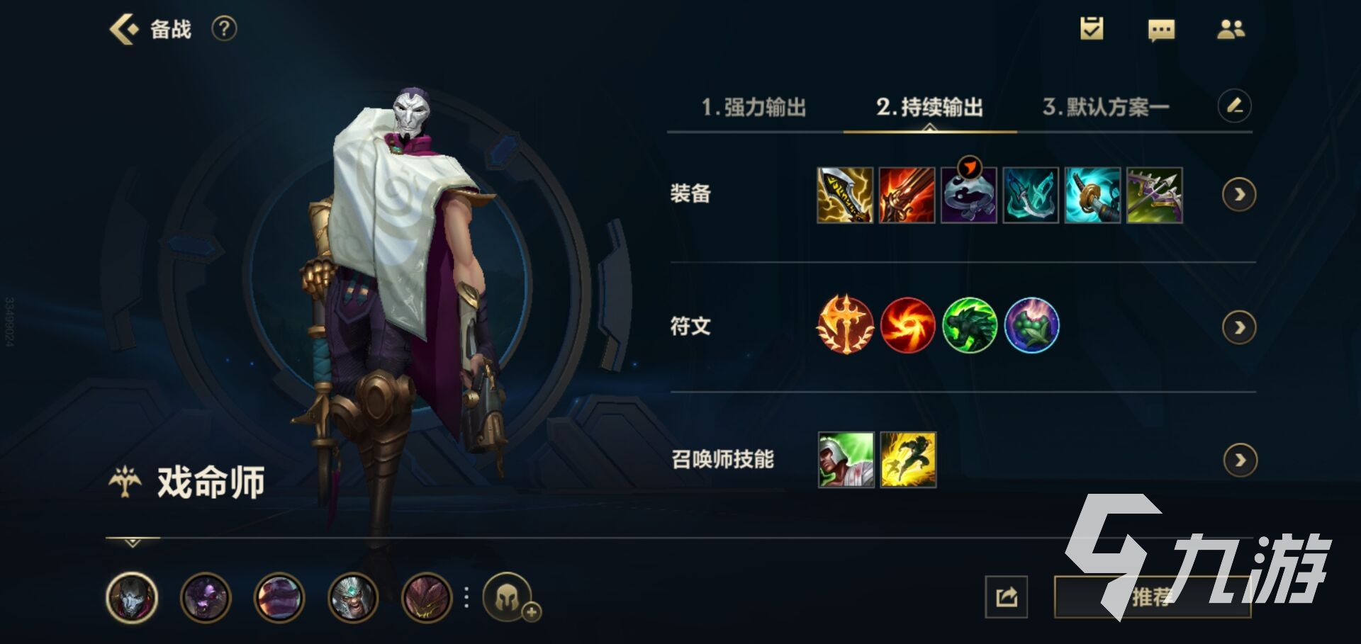 在出裝方面推薦戲命師出門就攜帶長劍或者是短劍,提高我們的攻擊傷害。出裝推薦出暴擊,分別是無盡之刃、疾射火炮、水銀飾帶、幻影之舞、斯塔克緹克電刃和凡星的提醒,能夠增加他的暴擊傷害,這樣就可以彌補這個英雄攻速上的不足,能夠讓他即使攻速很低也能打出爆發(fā)傷害。另外還可以選擇中婭沙漏或者是守護天使進行更換,來提高自己的生存能力。
