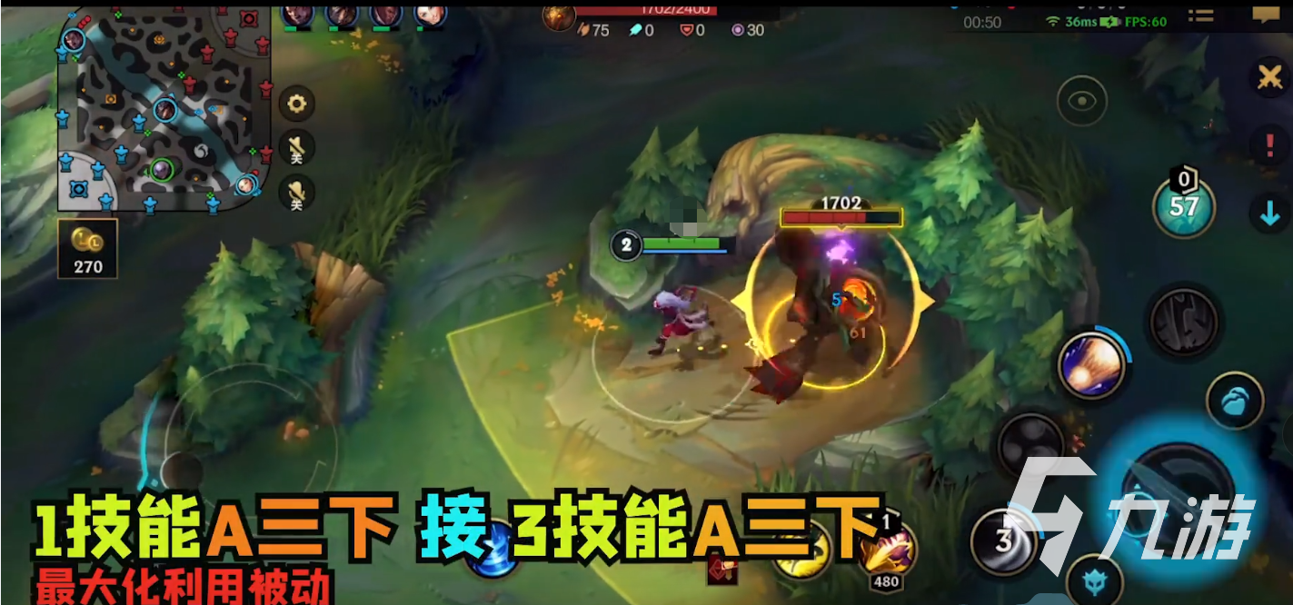 注意這里不能直接QE二連,由于皎月的被動是技能時候后三次普攻就能刷被動,因此我們的套路是:Q一下A三下,E一下A三下,這樣的話就能多打普攻傷害。