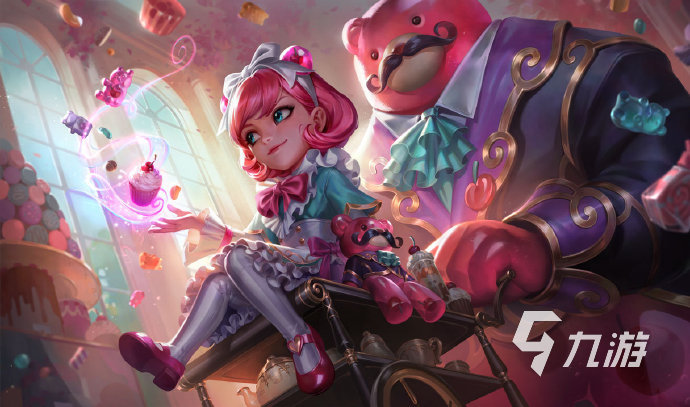 這款皮膚的整體外觀看起來就有濃濃的少女心,安妮就像一個愛吃蛋糕的小公主一樣被他的粉紅熊騎士保護著。