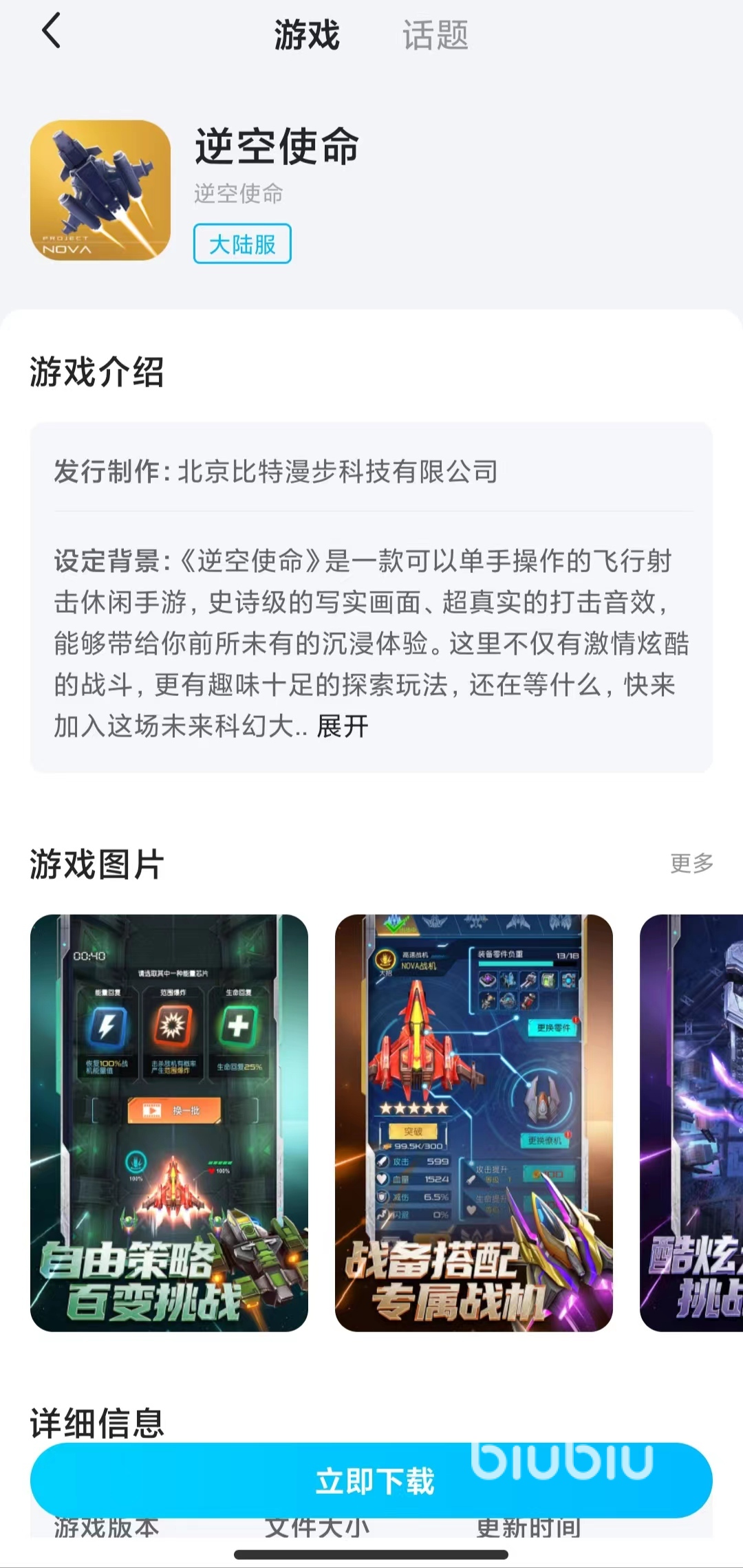 點(diǎn)擊后,玩家可以看到游戲圖標(biāo),話題等訊息,著急的玩家點(diǎn)擊圖標(biāo)即可。隨后,玩家會(huì)進(jìn)入游戲詳情頁(yè),這里詳細(xì)記述了有關(guān)游戲的全部信息,小編大致給大家概括一下。