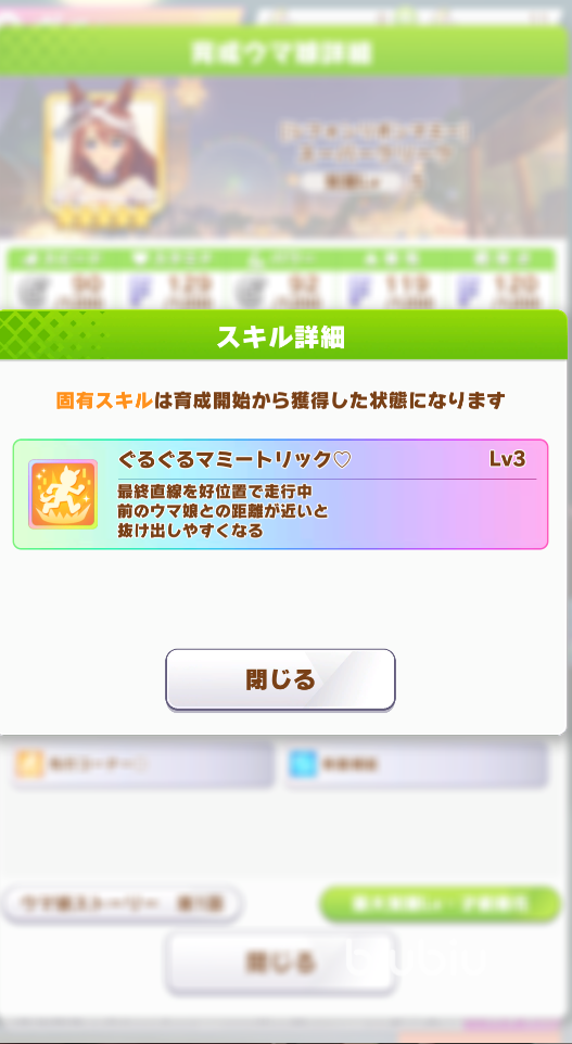 在實(shí)戰(zhàn)中,萬圣小海灣的主要跑法為差行,也就是在比賽中后盤發(fā)力超越的一種跑法類型。萬圣小海灣本身又屬于短距離和中距離特化的馬娘,因此對(duì)培育的屬性整體而言要求沒有那么高,對(duì)于萌新小伙伴而言培育的上手難度還是比較低的。