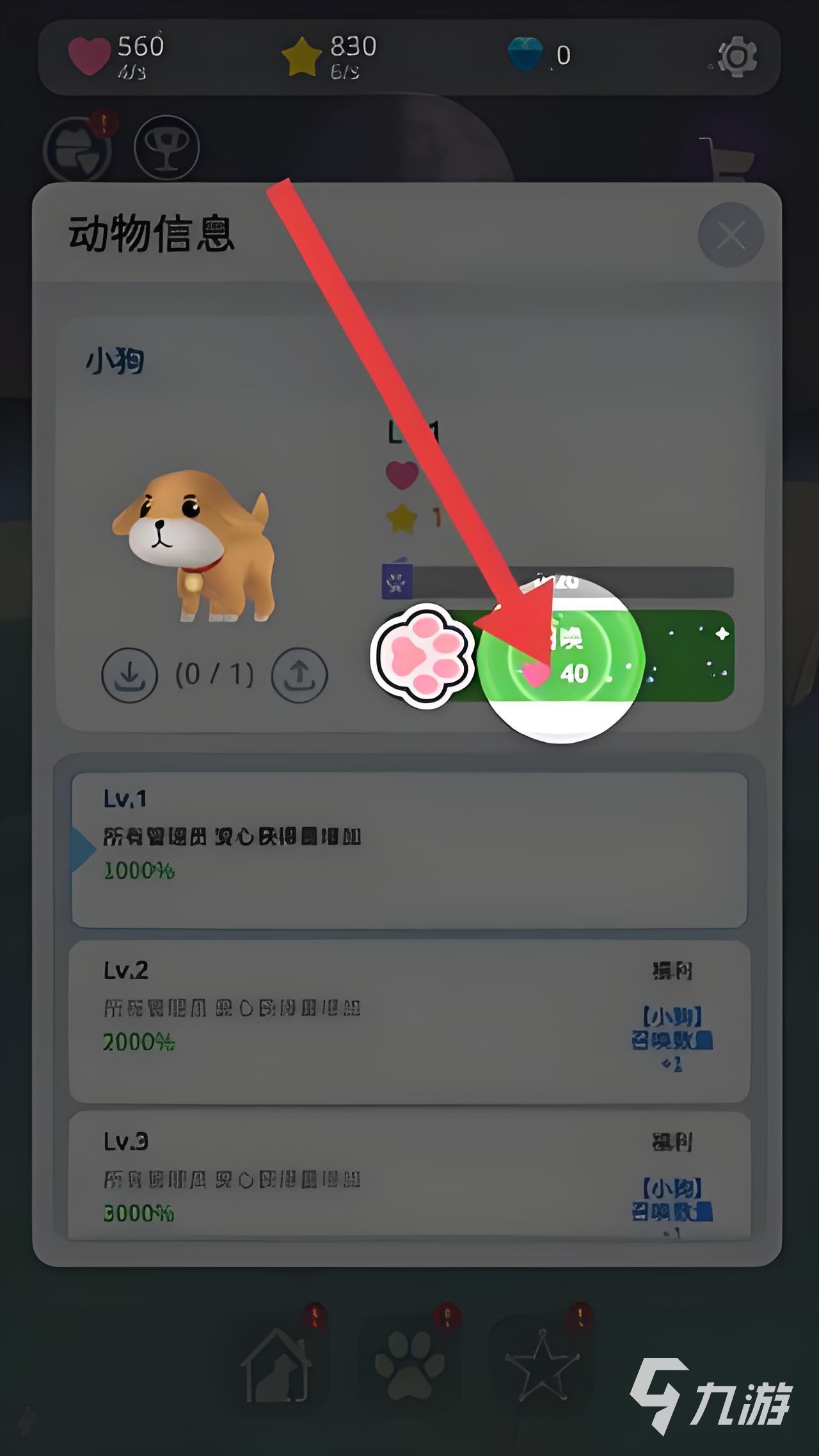 在這之前大家也可了解一下游戲的玩法或者背景等內(nèi)容,這樣到了可玩時(shí)才不會(huì)太懵圈。游戲開始時(shí)會(huì)有貓爪指引,點(diǎn)擊屏幕即可完成基礎(chǔ)操作教程。通過消耗愛心等資源召喚小動(dòng)物,每只動(dòng)物都有不同的增益效果(如增加愛心獲取量)。
