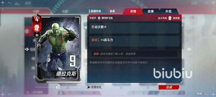 首先星爵卡組如果想玩破敵玩法的話,那么星爵,德拉克斯,科思默,勇度這4張卡是必不可少的。星爵毫無疑問是整個陣容的核心,而德拉克斯的被動在觸發(fā)破敵效果之后,可以增加4點戰(zhàn)斗力。和德拉克斯一樣,科思默的被動也是增加戰(zhàn)斗力,但是他是在觸發(fā)破敵效果后,為整個隊伍當中所有的進攻英雄增加5點戰(zhàn)斗力。勇度則是整個卡組當中后期輸出的核心,如果沒有勇度的話,那么破敵星爵這個玩法小編不建議各位小伙伴去選擇,因為在后期整個陣容基本上是0輸出。
