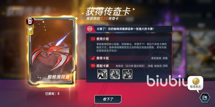 而傳奇裝備卡各位小伙伴首先要考慮的就是他的輸出能力,畢竟作為一個(gè)裝備,如果輸出不夠的話,那么選擇他也就失去了意義。小編為大家推薦的傳奇裝備卡是蜘蛛滑翔翼,這張卡不僅輸出很高,而且它的控制效果也非常好用。作為控制流蜘蛛俠的核心裝備,蜘蛛滑翔翼憑借他穩(wěn)定的控制效果以及先手輸出能力受到了非常多玩家的喜愛。