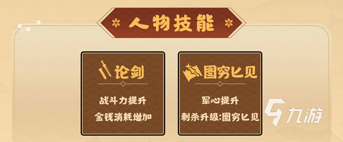 圖窮匕見:提升我方軍心,并且獲得用間技能圖窮匕見,可以大幅度削弱敵方軍心。這個(gè)技能也給了軍隊(duì)一個(gè)很好的buff,并且還能削弱敵方軍心,這個(gè)技能十分的實(shí)用。