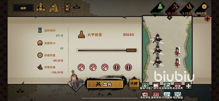 最為第一選擇的蕭英雄在劇本中的撫民中,在自家軍隊(duì)的人數(shù)達(dá)到十萬(wàn)時(shí),就可以提高大概30左右的金幣以及糧草了。在守國(guó)中,要是自家隊(duì)伍的人數(shù)很少,達(dá)不到十五萬(wàn)的時(shí)候, 自家防御要是還獲得了勝利,就會(huì)收到兩萬(wàn)軍隊(duì)的獎(jiǎng)勵(lì)哦。在舉士中,還可以招到國(guó)外的一些知名將士哦。
