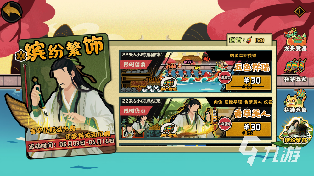來源: 極光 作者: 歡樂的時光 2022年06月01日 15:21無悔華夏作為一款以國風(fēng)的手游,自然是要在端午節(jié)這天開啟活動的,不過很多小伙伴并不知道有哪些內(nèi)容,那下面就來講講無悔華夏端午節(jié)活動2022的詳細(xì)內(nèi)容,不清楚的小伙伴一起進(jìn)來看看吧。
