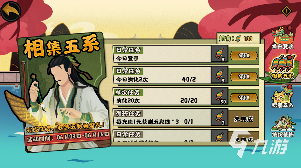 第二個環(huán)節(jié)是收集五彩線,每天都會更新一些五彩線任務(wù),大家按照要求完成任務(wù)即可獲得大量五彩線。