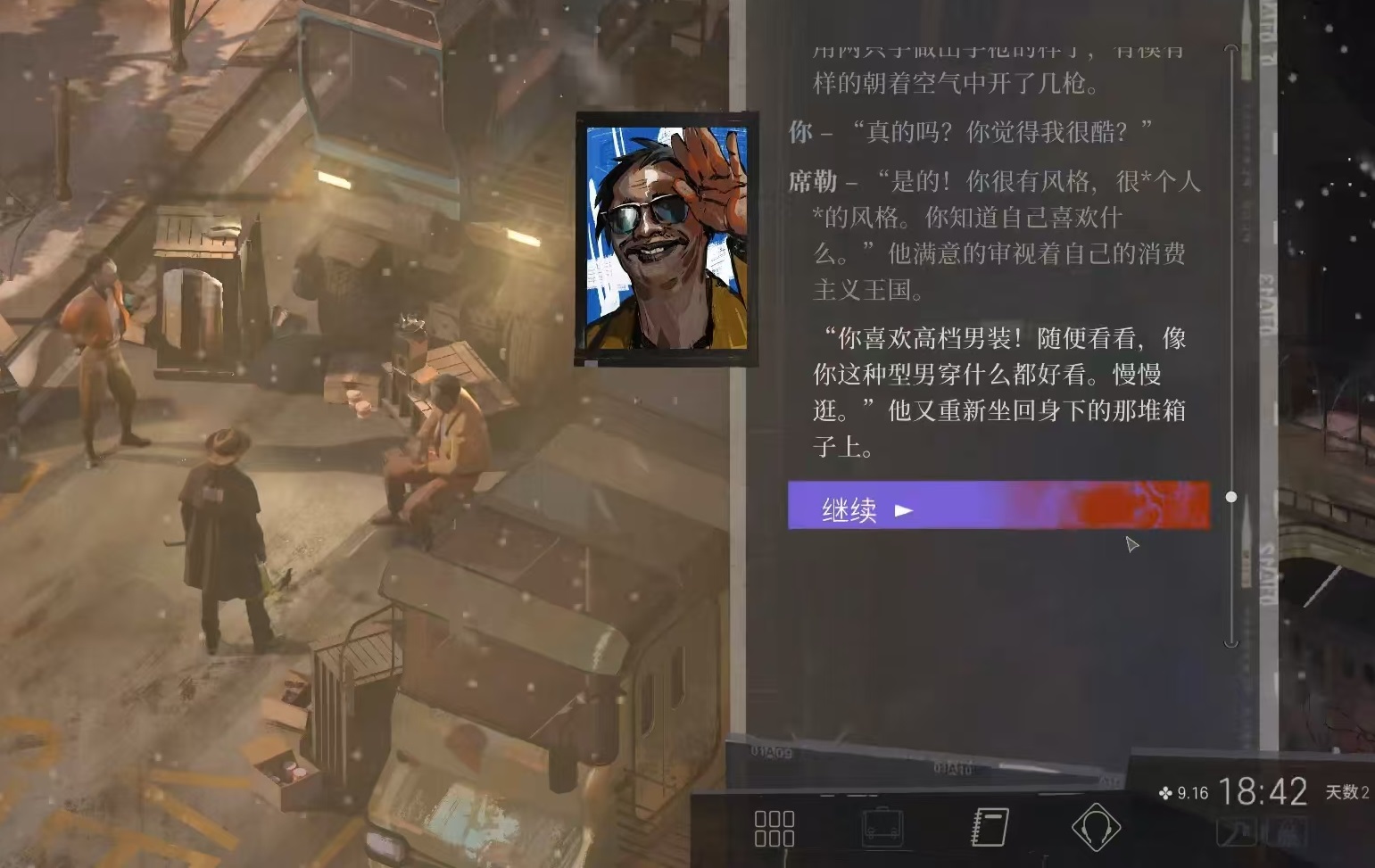接下來是坤諾,他是一個生活在院子里的少年,性格叛逆,而且嘴硬,經(jīng)常試圖裝成硬漢,經(jīng)常為主角提供一些情報。玩家還有機(jī)會讓他加入到隊伍中去,完成一些成就或者是任務(wù)等。然后是側(cè)顱先生,這是一個身高超過兩米的大漢,他守衛(wèi)著海港辦公室開門按鈕,認(rèn)為自己是所有種族巔峰。逃兵,是吊人案的兇手,曾經(jīng)是戰(zhàn)士,在部隊被擊毀之后成為了游擊隊員,他的動機(jī)夾雜著個人因素,最后在主角面前精神防線崩潰。