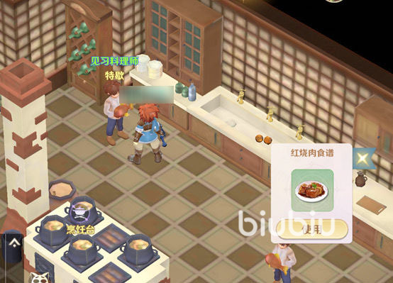 第三個途徑就是與npc對話互動了,小伙伴們在游戲里能遇到不同的npc,而不同的npc在對話交互以后,有的就能贈予一些食譜獎勵哦,比如小伙伴們在找到見習料理師這個npc以后,就能從對方手上得到一個紅燒肉的食譜。此外也要提醒一下,有的npc角色是需要達到一定的好感才行哦,比如商人拉謝爾這個npc,想要找他換食譜,就要將其好感刷上去才能去換哦。
