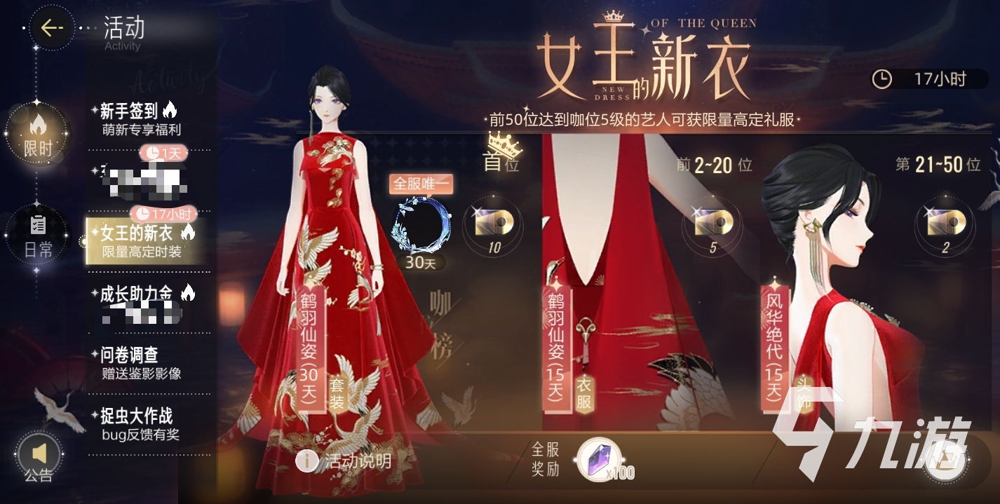 第三種方法是通過(guò)活動(dòng)玩法獲取,在游戲主頁(yè)面的正上方有一個(gè)活動(dòng)板塊,里面是有很多任務(wù)存在的,玩家按照指定要求完成任務(wù)都可以獲取到對(duì)應(yīng)的獎(jiǎng)勵(lì),其中有些任務(wù)就是可以獲取到時(shí)裝的,例如女王的新衣。