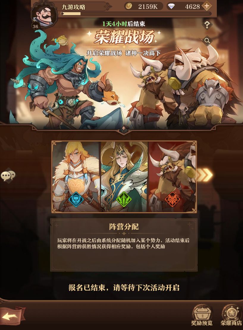 榮耀戰(zhàn)場(chǎng)玩法,玩家們需要優(yōu)先報(bào)名,接下來(lái)將持續(xù)為期三天的戰(zhàn)場(chǎng)戰(zhàn)斗,榮耀戰(zhàn)場(chǎng)玩法會(huì)將各位玩家,隨機(jī)分為獅王之心,悠遠(yuǎn)之翼以及蠻荒之角三個(gè)陣營(yíng),在這個(gè)玩法中,每日活動(dòng)都會(huì)衍生出許多豐富多樣的玩法,比如說(shuō)boss挑戰(zhàn)據(jù)點(diǎn)守衛(wèi)以及資源爭(zhēng)奪戰(zhàn),最后的勢(shì)力征戰(zhàn)才是這個(gè)玩法重頭戲,每一期都會(huì)產(chǎn)生不同的隨機(jī)玩法。