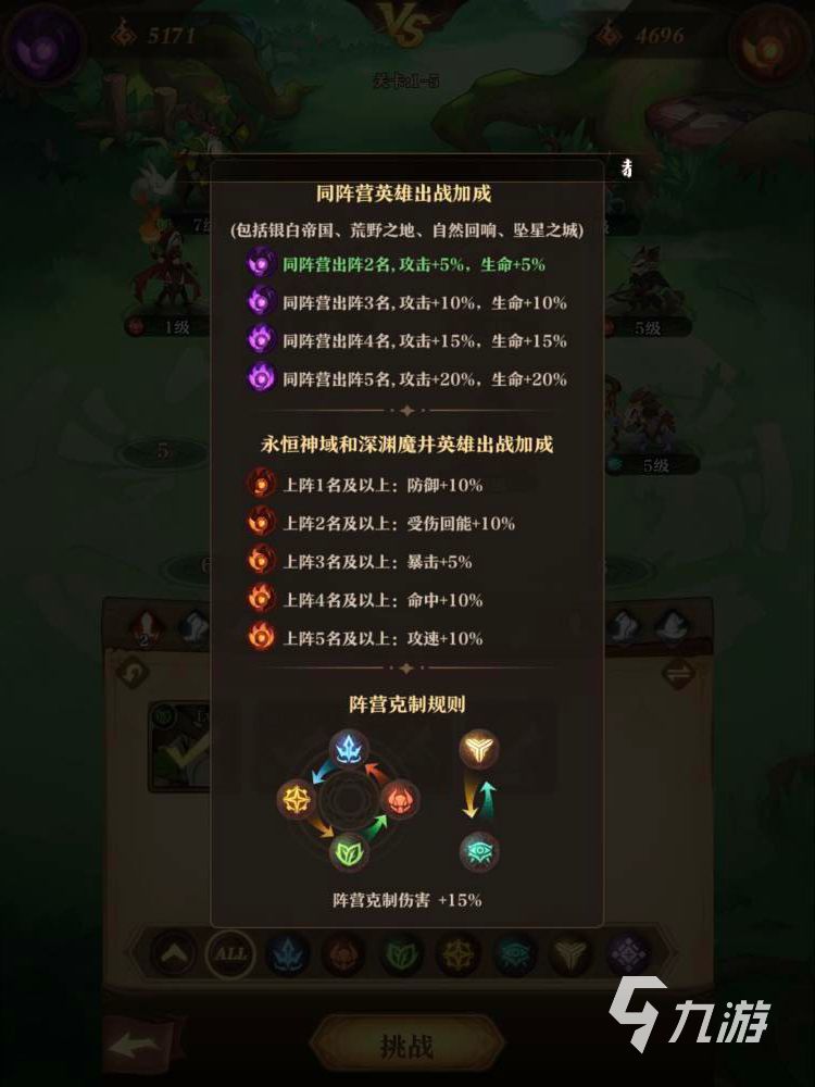陣營(yíng):圣樹喚歌和傳統(tǒng)的卡牌rpg手游是一樣的,各個(gè)英雄分別來(lái)自不同的陣營(yíng),而來(lái)自同一陣營(yíng)的英雄上陣,會(huì)有特殊的效果,在陣容搭配上就要考慮這一點(diǎn),在游戲中一共分為六大陣營(yíng),這六大陣營(yíng)之間,相互存在著克制關(guān)系,只要出戰(zhàn)兩名或兩名以上的英雄,都會(huì)有不同的攻擊以及生命加成,在搭配陣容的時(shí)候,這一點(diǎn)是首先要注意的。