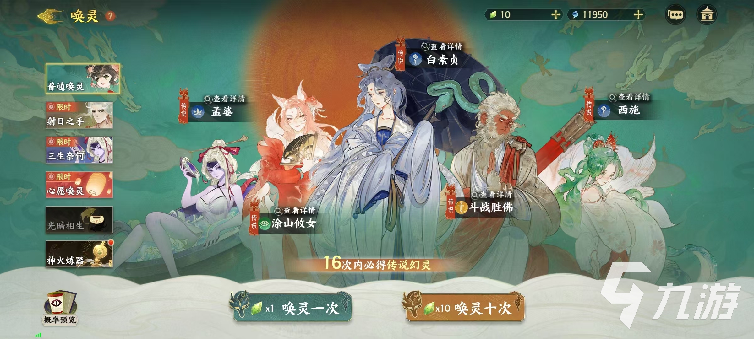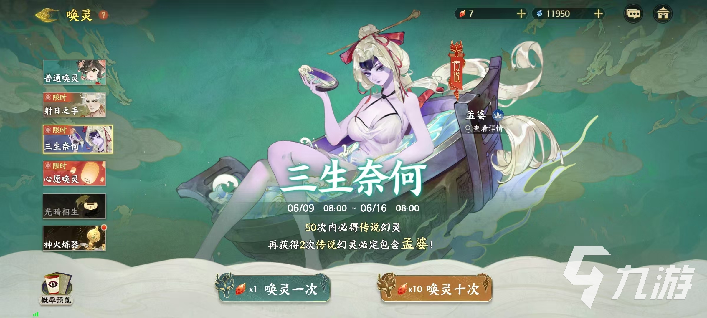 先來看最基礎(chǔ)的普通喚靈,也就是普通池,這里面可以出現(xiàn)游戲中所有的角色。適用于新手玩家在最初的時(shí)候選擇按,簡(jiǎn)單來說就是抽到哪些就直接使用。后續(xù)會(huì)開放限定池,在游戲剛剛開服的時(shí)候,兩個(gè)限定池分別是射日之手和三生奈何,這兩個(gè)池子中一個(gè)可以出現(xiàn)傳說級(jí)角色后羿,一個(gè)可以出現(xiàn)傳說級(jí)角色孟婆。這兩個(gè)池子是小編推薦大家一定要去抽的,因?yàn)槊窟M(jìn)行50次抽取,必定會(huì)得到對(duì)應(yīng)的傳說品質(zhì)角色,后羿是當(dāng)前輸出的頂流,而孟婆則是輔助中的佼佼者。