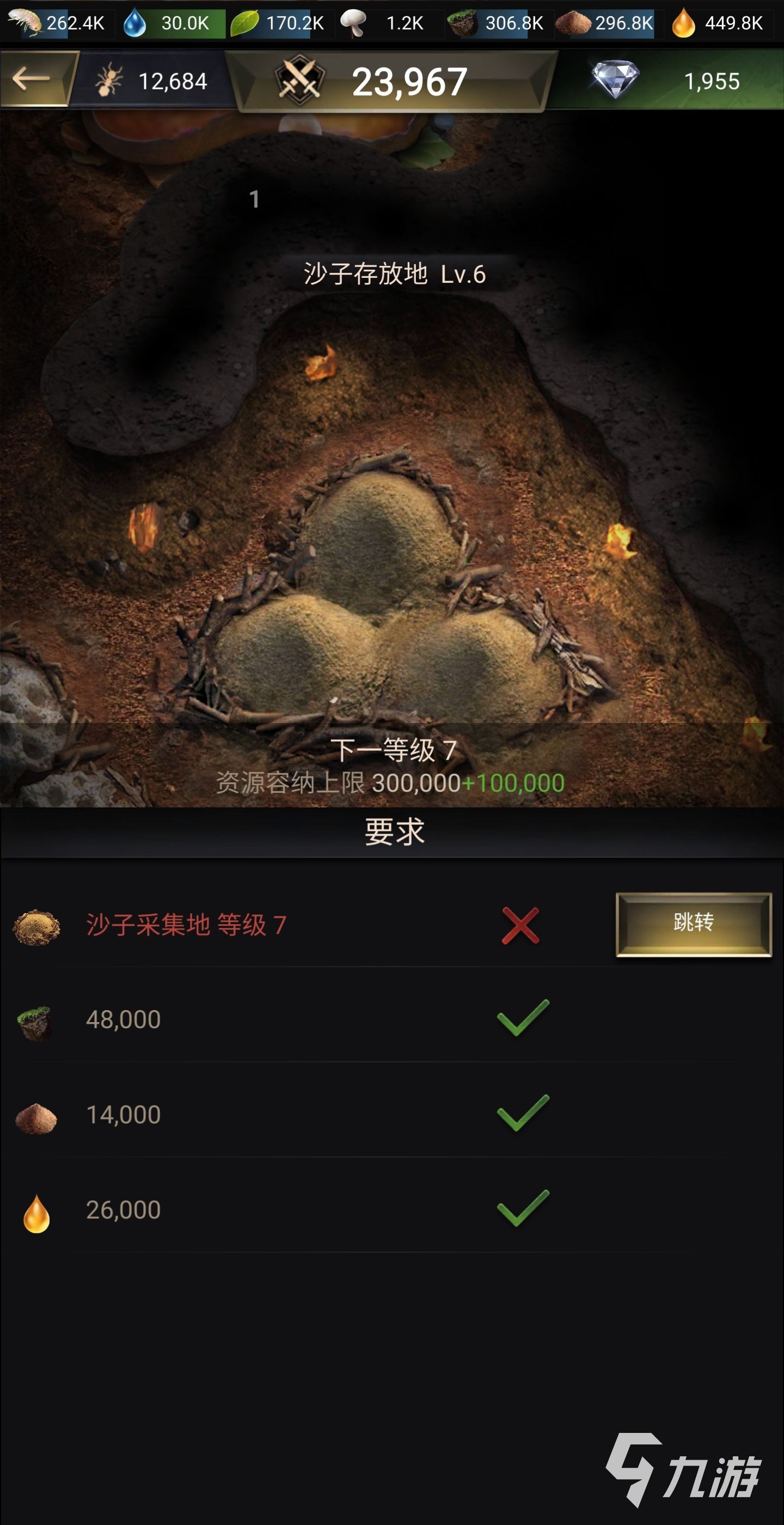 因此玩家們?cè)谏?jí)蟻后的時(shí)候,雖然有的時(shí)候資源卡使用完成的確資源夠用,但是奈何倉庫等級(jí)不夠數(shù)量不足,因此玩家們要做的就是分別升級(jí)對(duì)應(yīng)的存放地,比如說沙子通過使用儲(chǔ)存卡之后,可以達(dá)到升級(jí)所需要的量,那么就可以快速將沙子存放地升級(jí),每升一級(jí)倉庫的總儲(chǔ)量就會(huì)大大增加,但是要注意升級(jí)這些倉庫也會(huì)消耗相應(yīng)的材料,但并不會(huì)像升級(jí)蟻后消耗的那么多。玩家們不用擔(dān)心。
