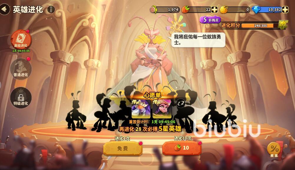 首先,游戲當(dāng)中一共包含三種不同的進化方式,分別為普通進化、高級進化以及特級進化。這三種進化模式在獲取不同類別的英雄概率上有著較大的區(qū)別,并且在進化過程當(dāng)中,玩家們所需要準(zhǔn)備的進化道具也是不一樣的。其中的普通進化,主要是玩家們前期獲取低級別英雄的主要進化模式。