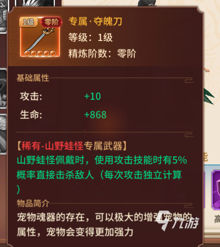 來源: 極光 作者: 鐵蛋 2021年11月12日 20:52在游戲中寵物帶來的提升是很大的,而從稀有級別的寵物開始就會(huì)有專屬武器的設(shè)定了。那么在萬靈山海之境專屬裝備怎么獲得?這個(gè)是很多玩家都想要知道的,一起來看萬靈山海之境專屬裝備獲取途徑有哪些。