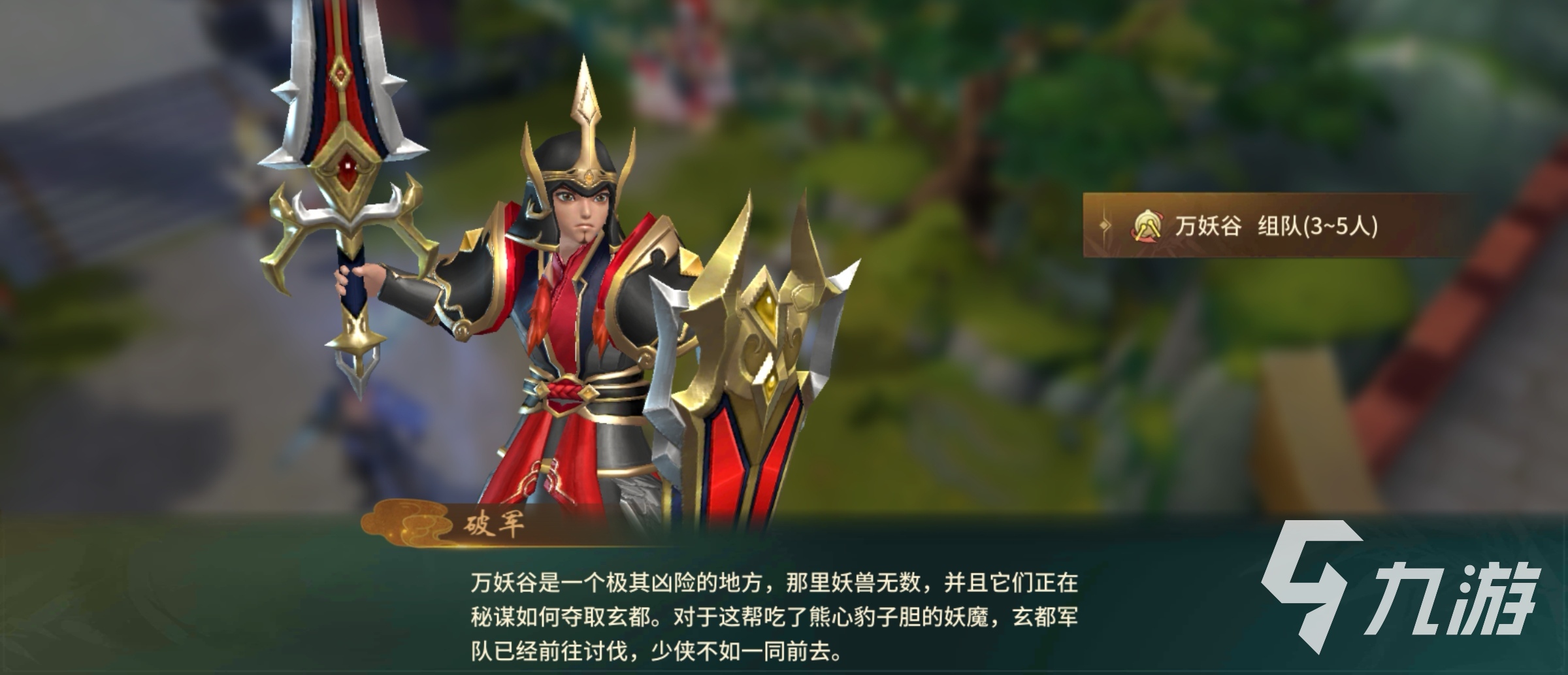 玩家前往玄都找破軍來領(lǐng)取這一需要三人以上的組隊(duì)任務(wù),接著到萬妖谷來進(jìn)行挑戰(zhàn),萬妖谷的難度是比較高的,但是玩家如果運(yùn)氣好能夠碰到大佬帶隊(duì)就不用擔(dān)心這些問題了,成功之后能夠領(lǐng)取30點(diǎn)活躍度。