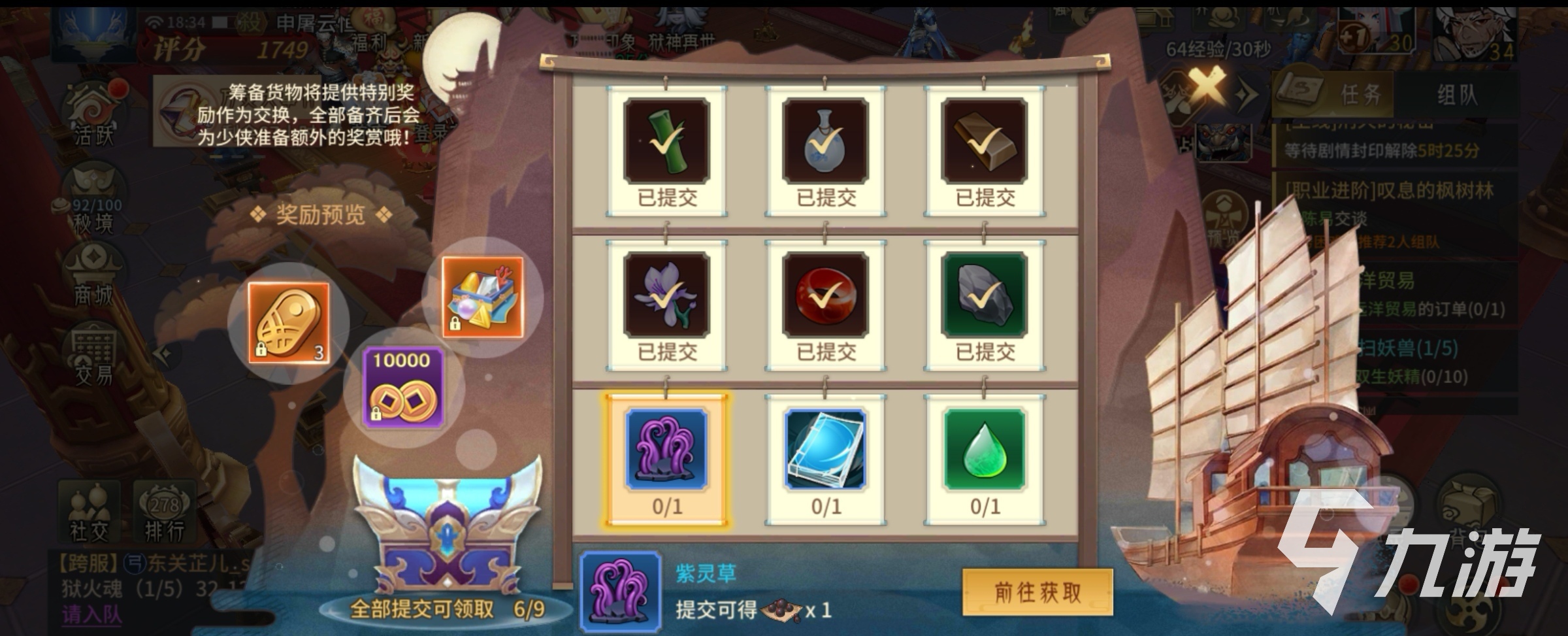 遠(yuǎn)洋貿(mào)易任務(wù)是讓玩家籌備貨物提供給商人,在全部籌備并提交后,各位少俠能夠領(lǐng)取極其豐厚的獎(jiǎng)勵(lì)。