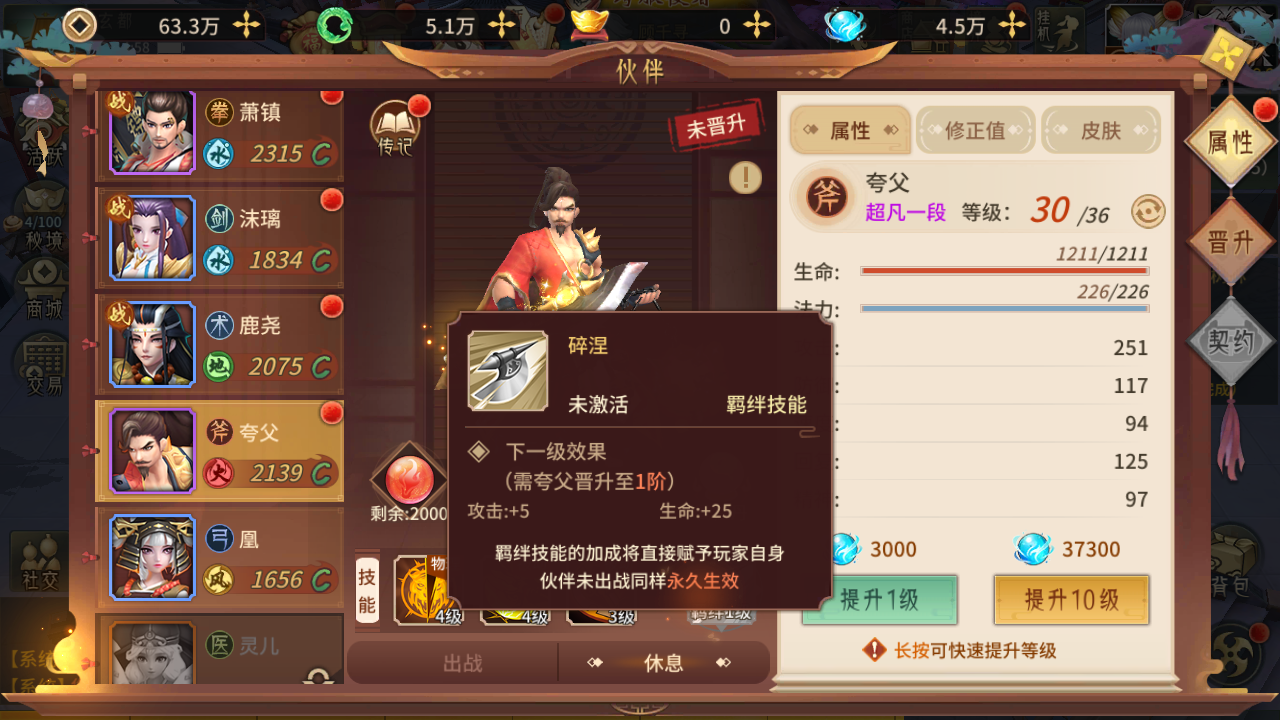夸父這個伙伴在品級上是超凡一段,這個就是紫色品級的設定。該品級的話基礎能力還是不錯的,在定位上夸父是一個斧頭武器。斧頭的話和狂戰(zhàn)士是一樣的,難么輸出能力肯定就是核心了。